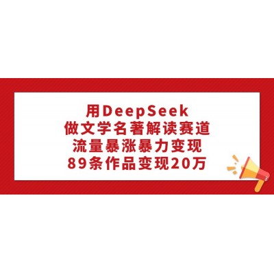 首页 > 知识付费 > 利用DeepSeek做文学名著解读赛道,流量暴涨暴力变现,89条作品变现20万