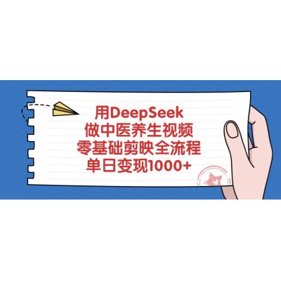 首页 > 知识付费 > 用DeepSeek做中医养生视频,零基础剪映全流程教程,单日变现1000+