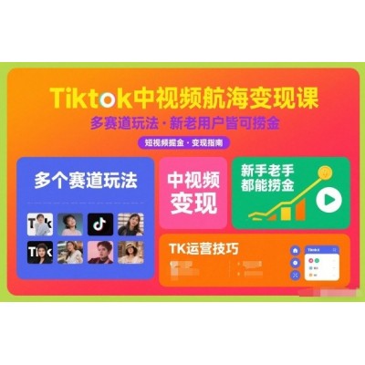 Tiktok中视频航海变现课,多个赛道玩法,新手老手都能在TK中视频捞金