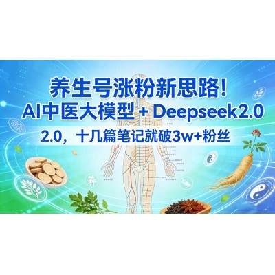养生号涨粉新思路!AI 中医大模型 + Deepseek 2.0,十几篇笔记就破 3w + 粉丝