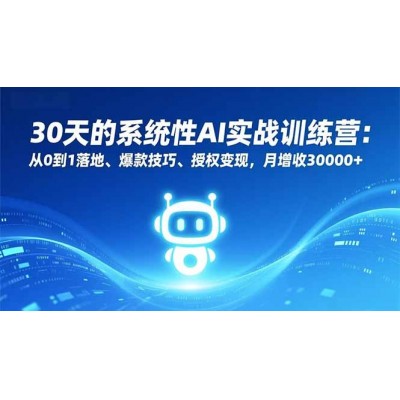 (16917期)30天的系统性AI实战训练营:从0到1落地、爆款技巧、授权变现,月增收30000+