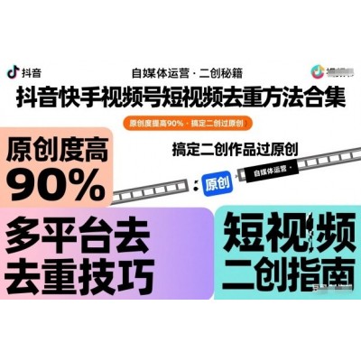 首页 > 知识付费 > 抖音快手视频号短视频去重方法合集,原创度提高90%,搞定二创作品过原创