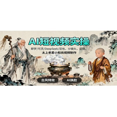 首页 > 知识付费 > AI短视频实操,即梦/可灵/DeepSeek/豆包,分镜头,运镜,太上老君小和尚视频制作