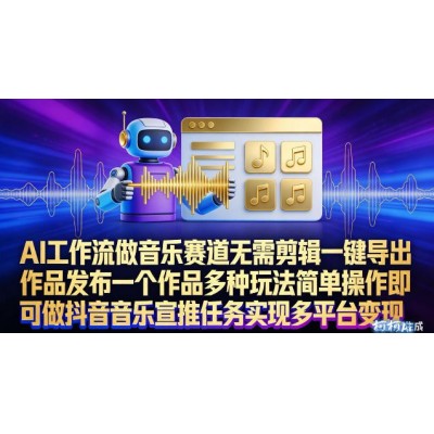 首页 > 知识付费 > AI工作流做音乐赛道,无需剪辑,一键导出作品发布,一个作品多种玩法,简单操作即可做抖音音乐宣推任务