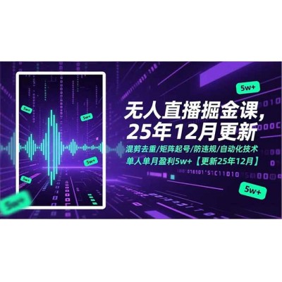 (17007期)无人直播掘金课,混剪去重/矩阵起号/防违规/自动化技术,单人单月盈利5w+【更新25年12月】