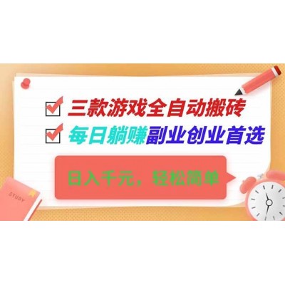 (16998期)三款游戏全自动搬砖,日入千元,轻松简单,每日躺赚,副业创业首选!