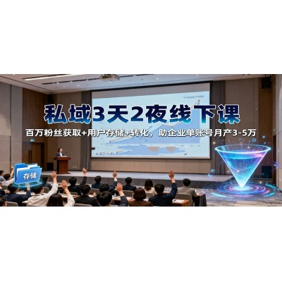 私域3天2夜线下课:百万粉丝获取+用户存储+转化,助企业单账号月产3-5万