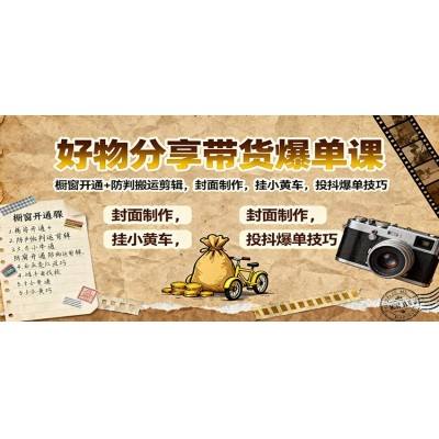 首页 > 知识付费 > 好物分享带货爆单课:橱窗开通+防判搬运剪辑,封面制作,挂小黄车,投抖爆单技巧