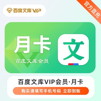 【自动充值】百度文库会员 手机号无密直充-VIP月卡