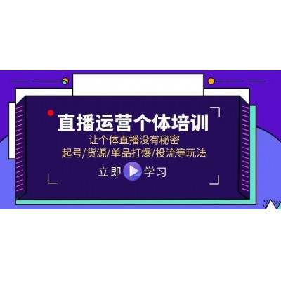 直播运营个体培训,让个体直播没有秘密,起号/货源/单品打爆/投流等玩法