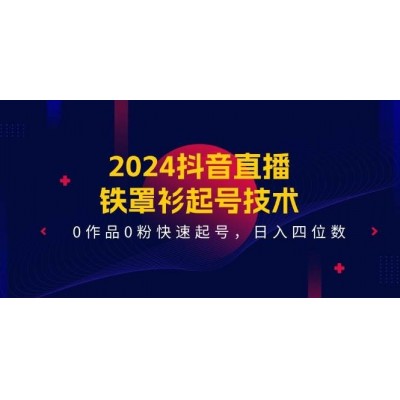 2024抖音直播-铁罩衫起号技术,0作品0粉快速起号,日入四位数(14节课)