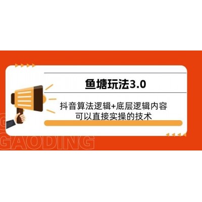 首页 > 知识付费 > 鱼塘玩法3.0:抖音算法逻辑+底层逻辑内容,可以直接实操的技术