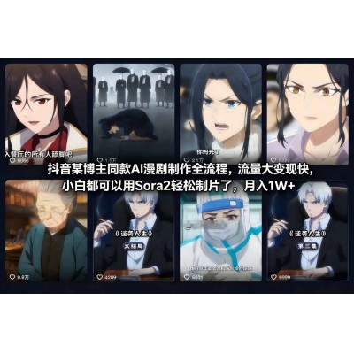 首页 > 知识付费 > 抖音某博主同款AI漫剧制作全流程,流量大变现快,小白都可以用Sora2轻松制片了,月入1W+
