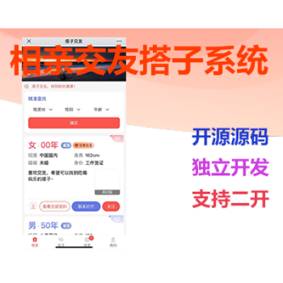 首页 > 源码集市 > 同城相亲交友系统找搭子社交约朋友会员制交友可一对一聊天自适应网站可二开