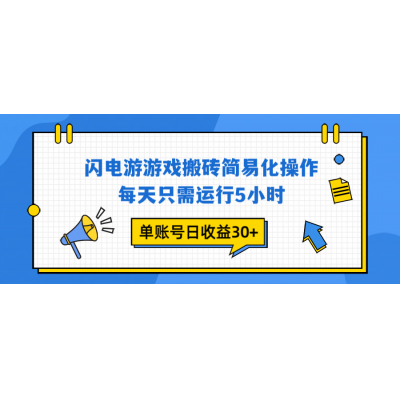 (16911期)闪电游 游戏试玩 每天只需运行5小时 单账号日收益30+当天上车当天就可以变现