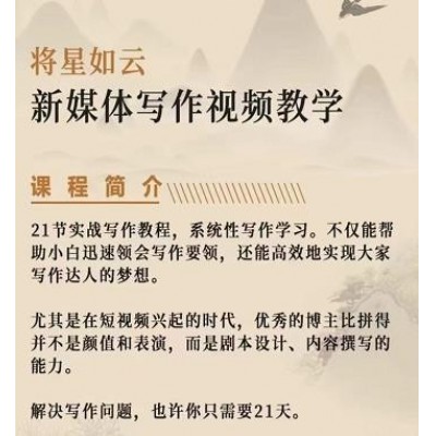 首页 > 限时特惠 > 将星如云新媒体写作视频教学课,轻松掌握写作方法
