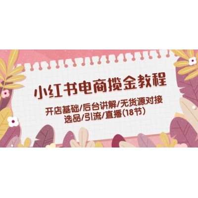 小红书电商揽金教程:开店基础/后台讲解/无货源对接/选品/引流/直播(18节)