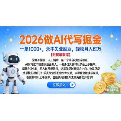 (16924期)2026做AI代写掘金,一单1000+,永不失业副业,轻松月入过万